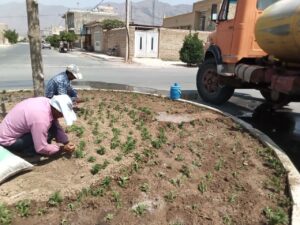 * ادامه کاشت انواع درخت مختلف و متنوع در پیاده راه بلوارها و میادین و معابر سطح شهر قیر