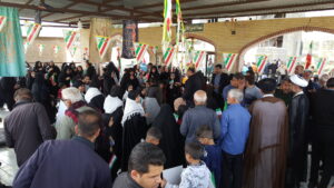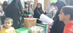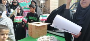 با برپایی موکب منتظران ظهور جنب بخشداری و موکب شهیدان طاهری جنب گلزار شهدا با همکاری شهرداری محترم و حوزه های بسیج حواهران و برادران از شرکت کنندگان در راهپیمایی با چای، کیک، آب، سربند، چفیه و بادکنک پذیرایی شد.