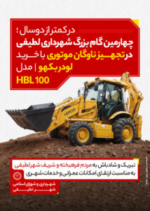 💎به گزارش روابط عمومی شهرداری لطیفی؛* با اضافه شدن یک دستگاه بیل بکهو “Backhoe Loader” مدل HBL100 به مجموعه ماشین‌آلات شهرداری، روند تجهیز ناوگان موتوری این نهاد خدماتی وارد مرحله جدیدی شد.
